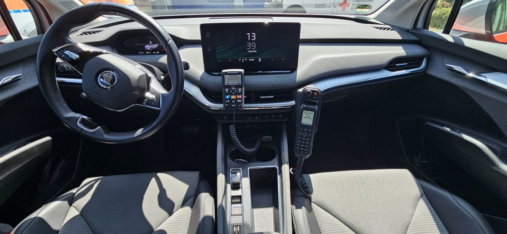 „E-mil“ ist unser neustes Fahrzeug und das erste Elektroauto unserer Bereitschaft. Es wird primär als zweites Notfallhilfefahrzeug und zu Sanitätsdiensten eingesetzt. Emil wurde als direkte Nachfolge für unser Einsatzgruppenfahrzeug „Bulli“ im Sommer 2025 angeschafft. Der offizielle Funkrufname lautet ST 51/42-1.